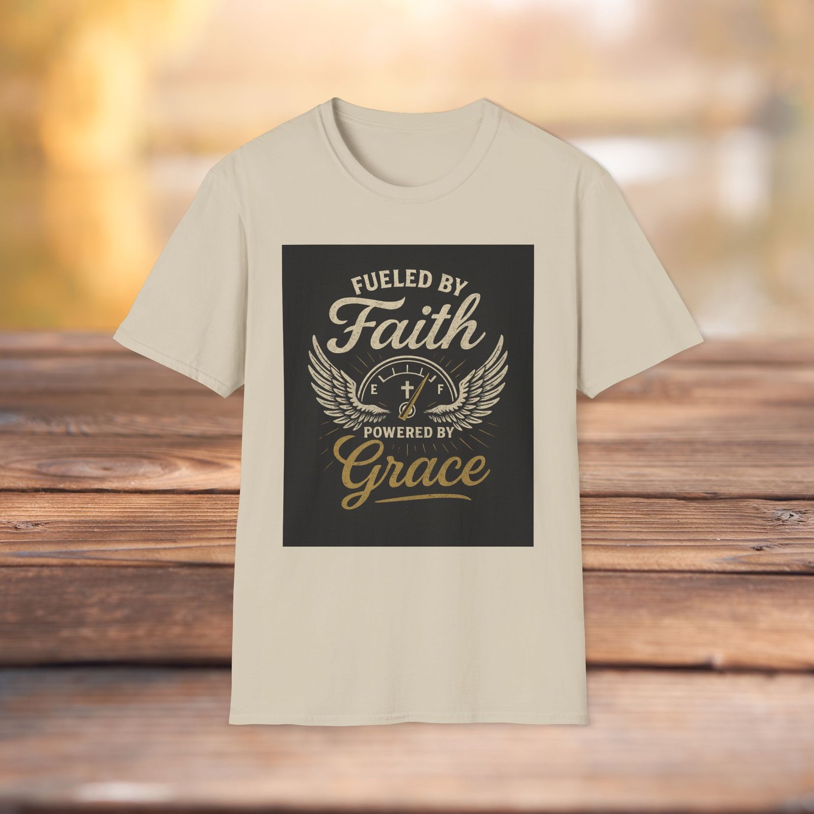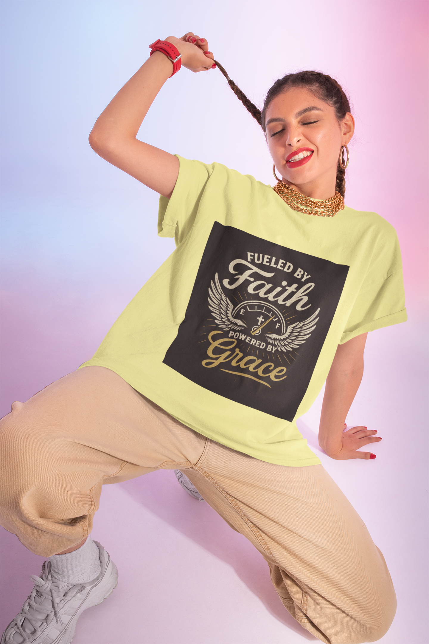 This T-Shirt is designed with the phrase ‘fueled by faith powered by grace,’ giving off an inspirational and uplifting vibe. It is perfect for those who want to express their faith and positivity through their clothing. Suitable for religious holidays, church gatherings, and everyday wear.