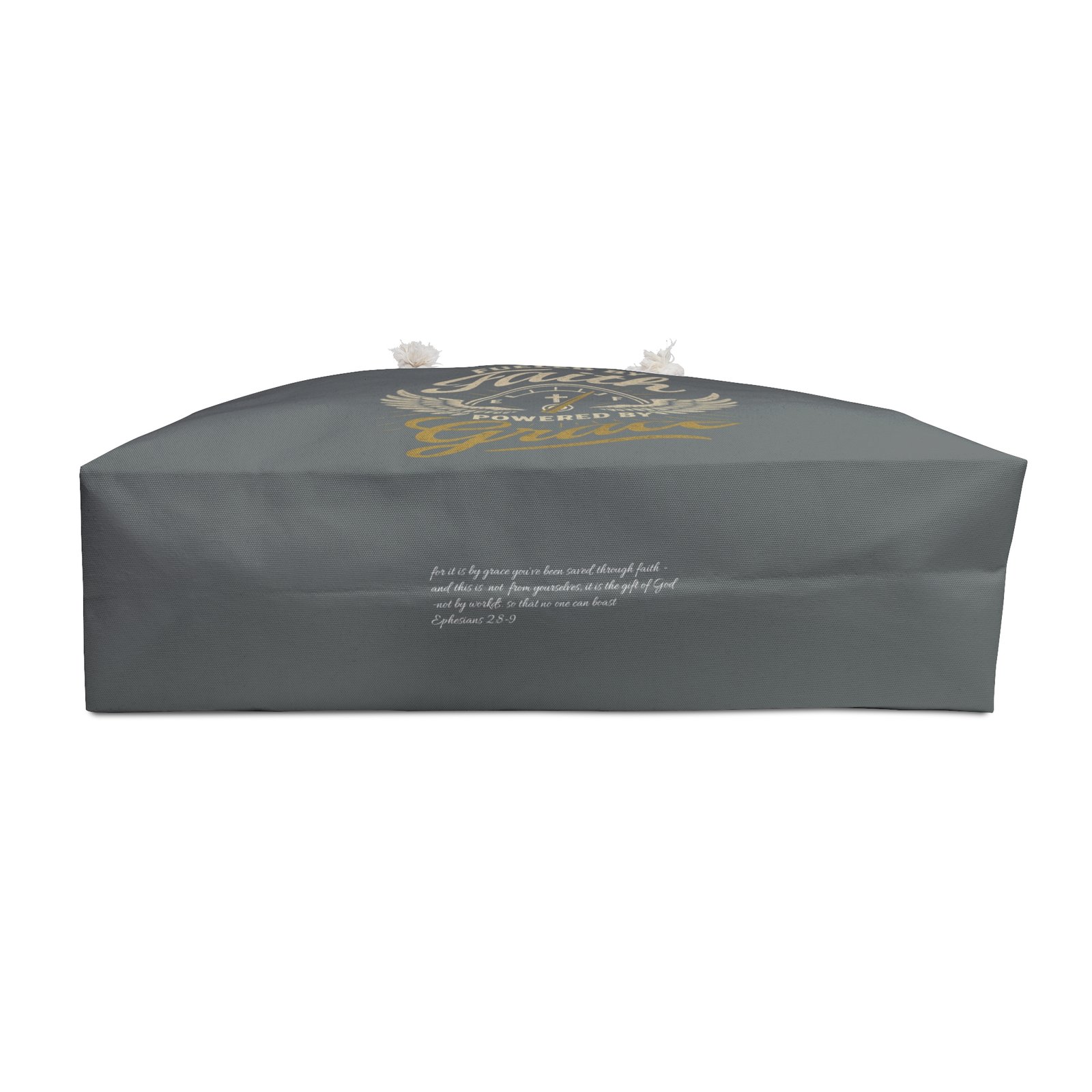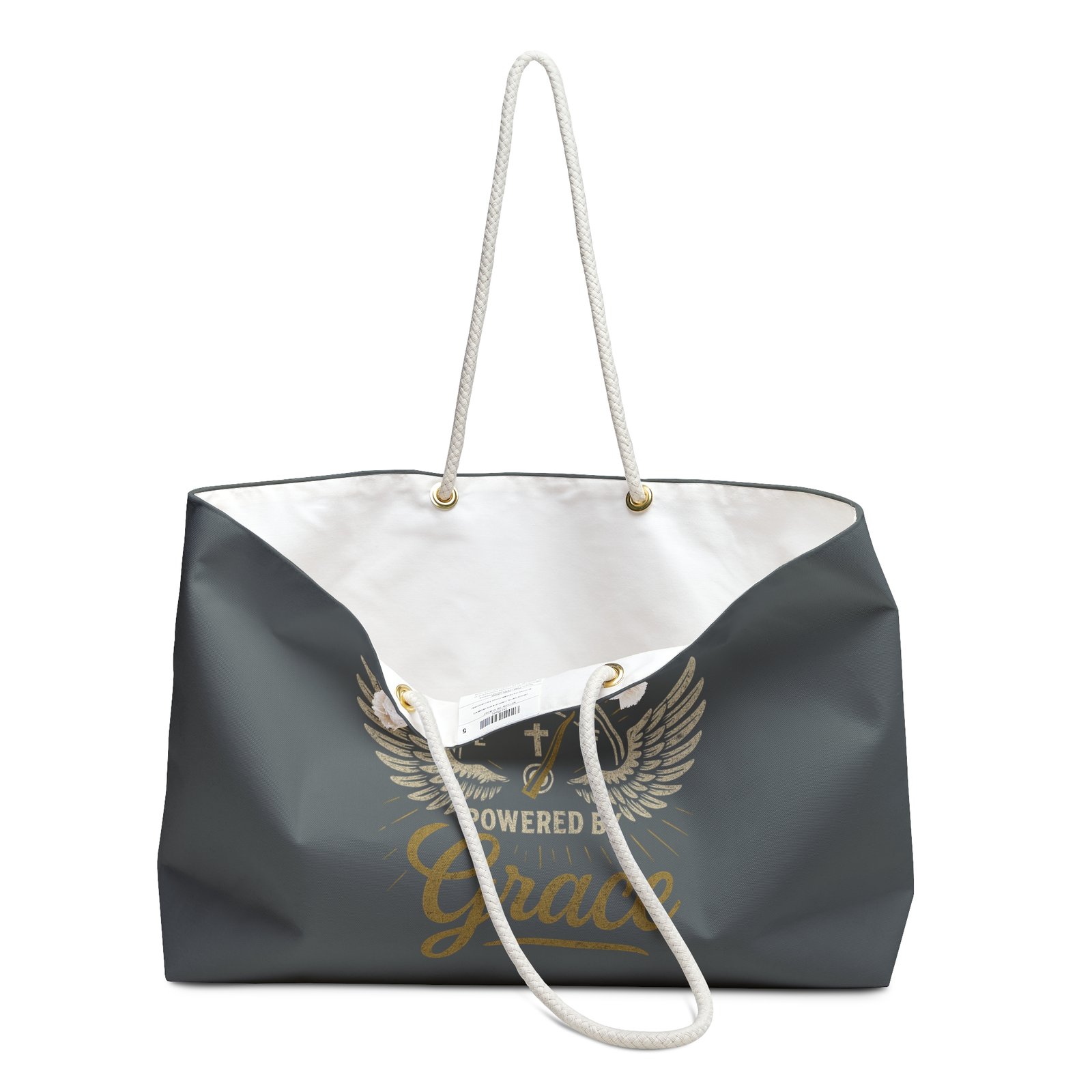 Dark Grey Weekender Bag with Fueled by Faith, Powered by Grace Design